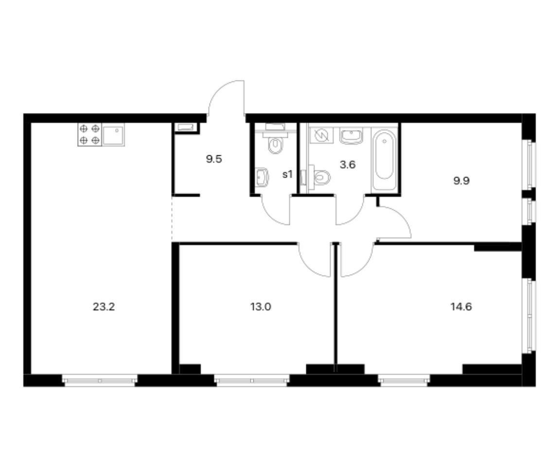 Общая площадь 76 м2