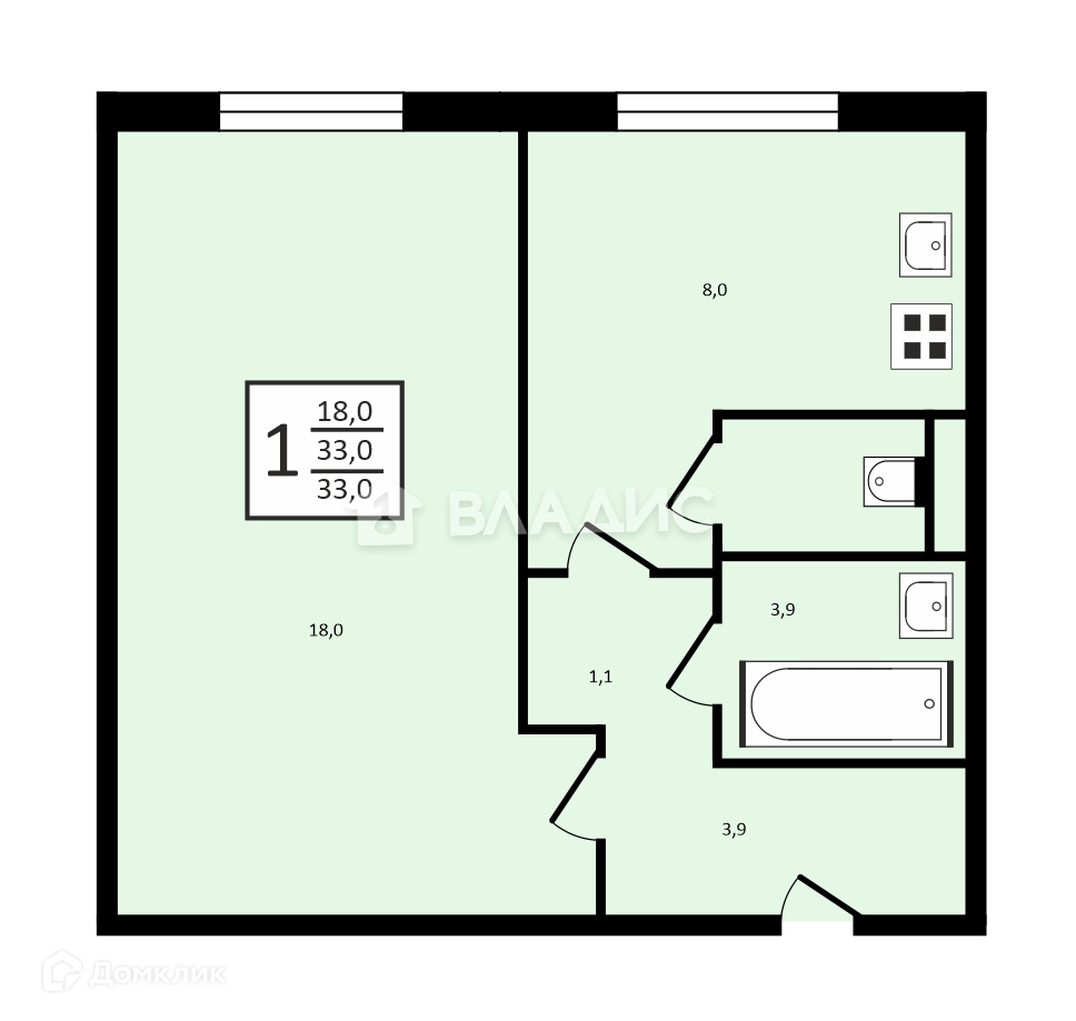 Общая площадь 33 м2