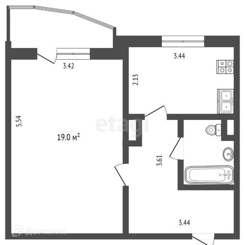 Общая площадь 37.7 м2