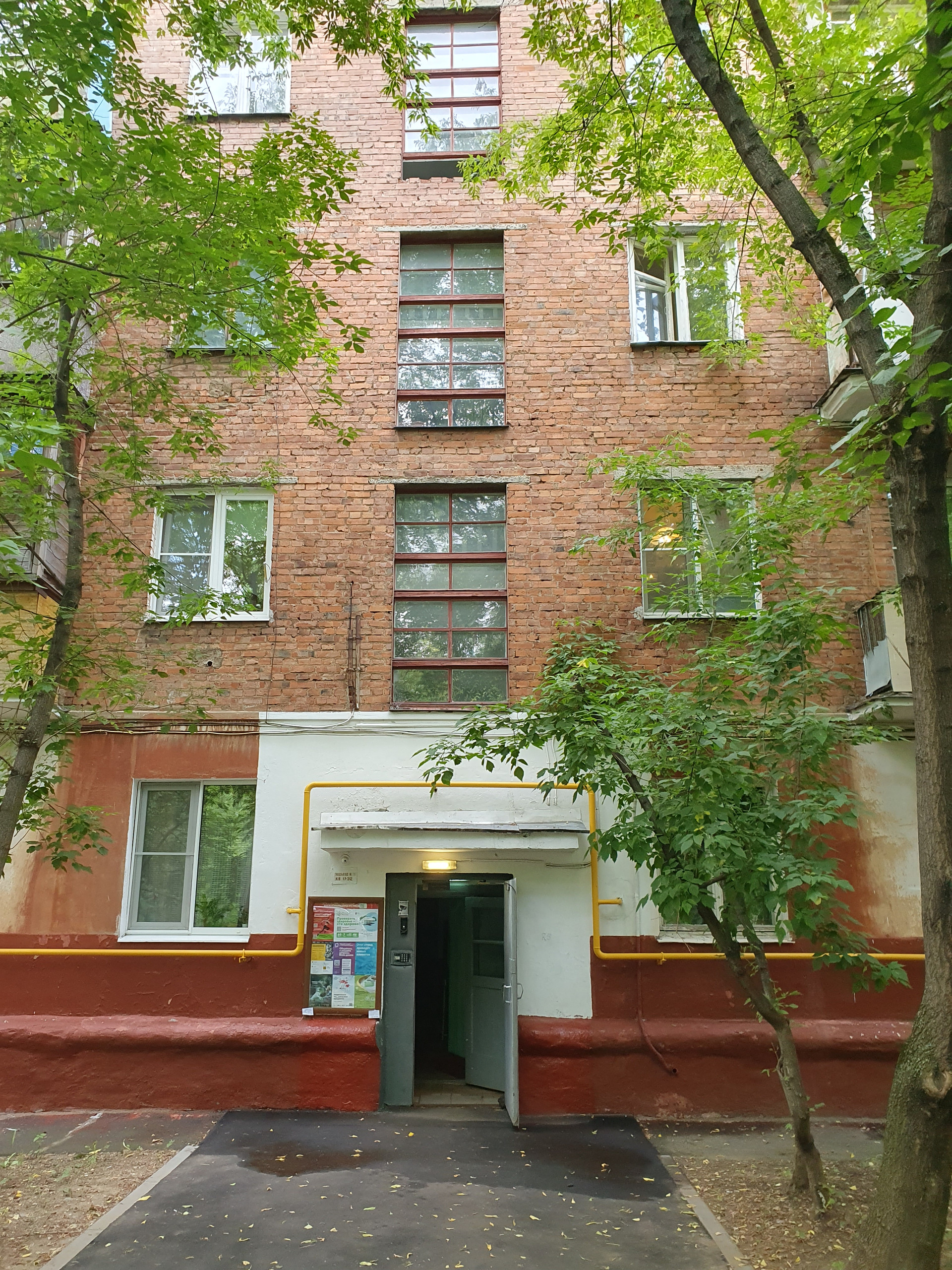 Дом кирпичный, чистый подъезд, ухоженный зеленый двор с детскими площадками и парковкой.