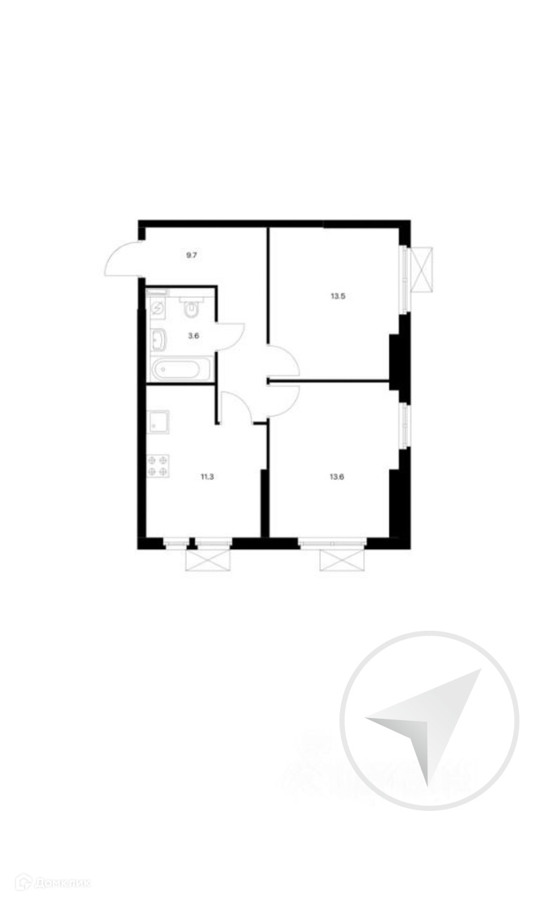 2-комнатная квартира, 52 м2, этаж 4 / 32, на продажу в Москве, Просторная улица, 7