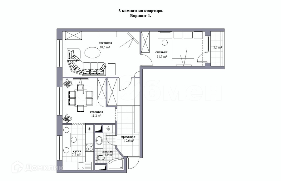 Количество комнат 3