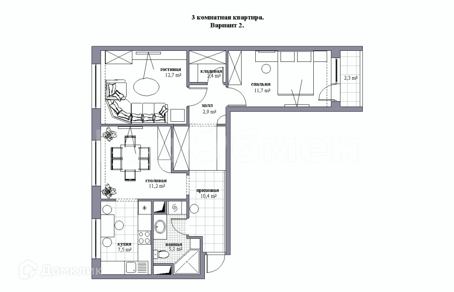 Высота потолков 2.7 м