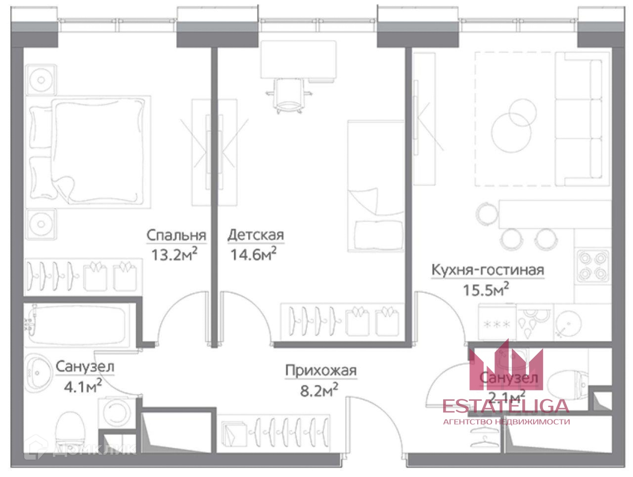 Жилая площадь 27.8 м2