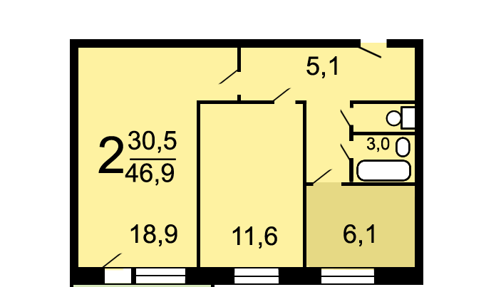 Общая площадь 46.4 м2