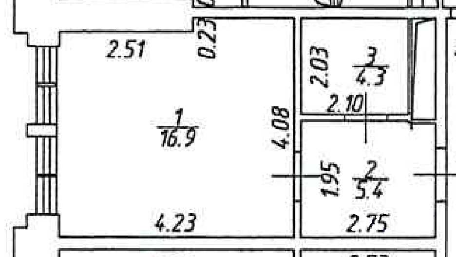 Жилая площадь 16.9 м2