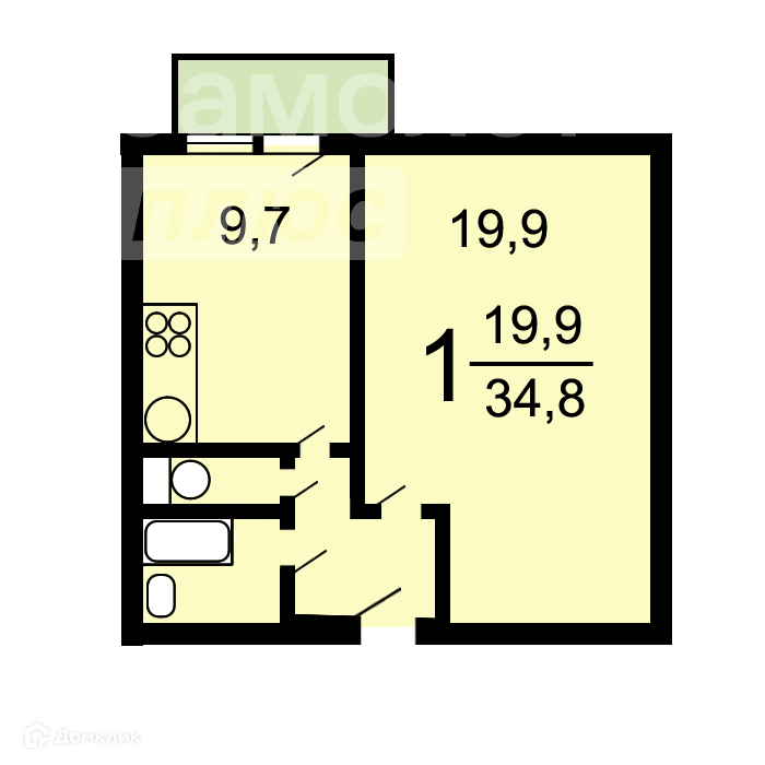 Общая площадь 36 м2