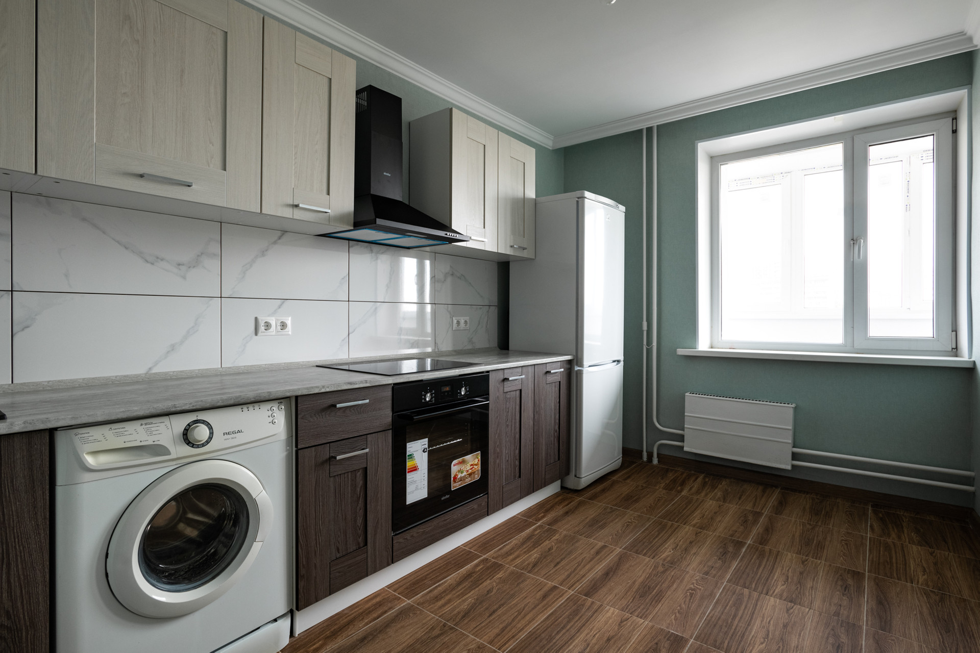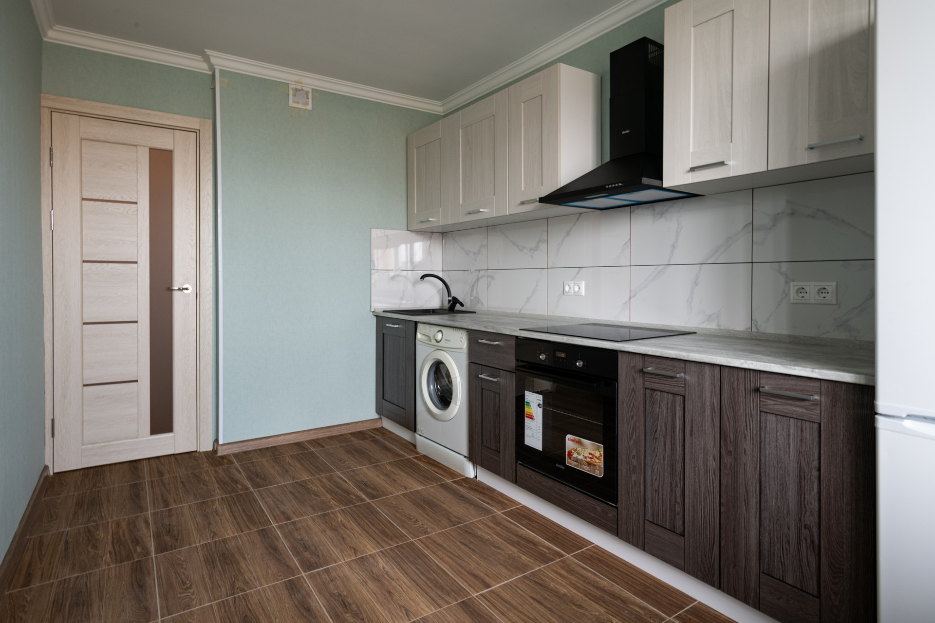 В квартире сделан свежий современный ремонт в нейтральных тонах, установлена новая бытовая техника и сантехническое оборудование, которые остаются новым хозяевам.