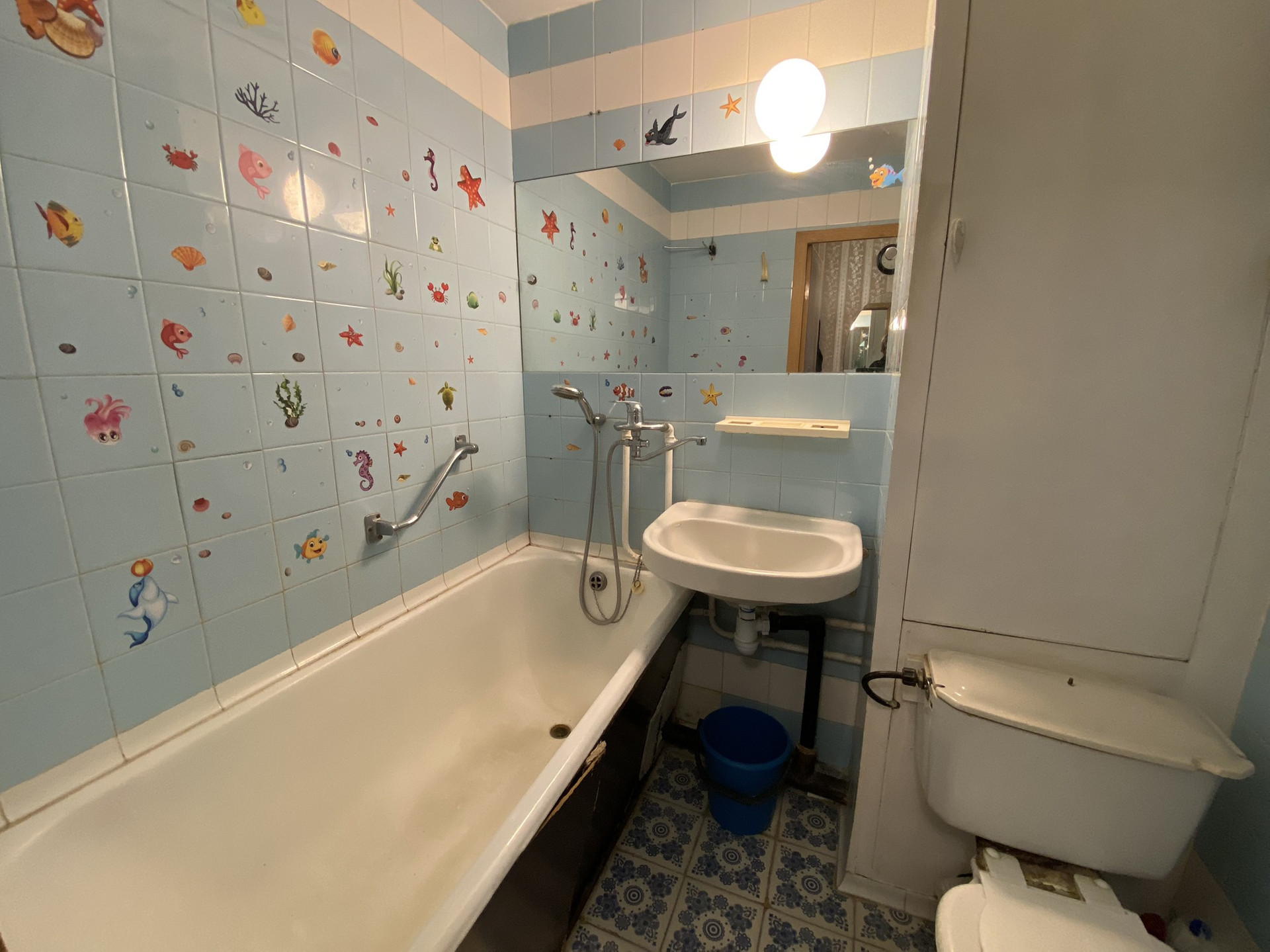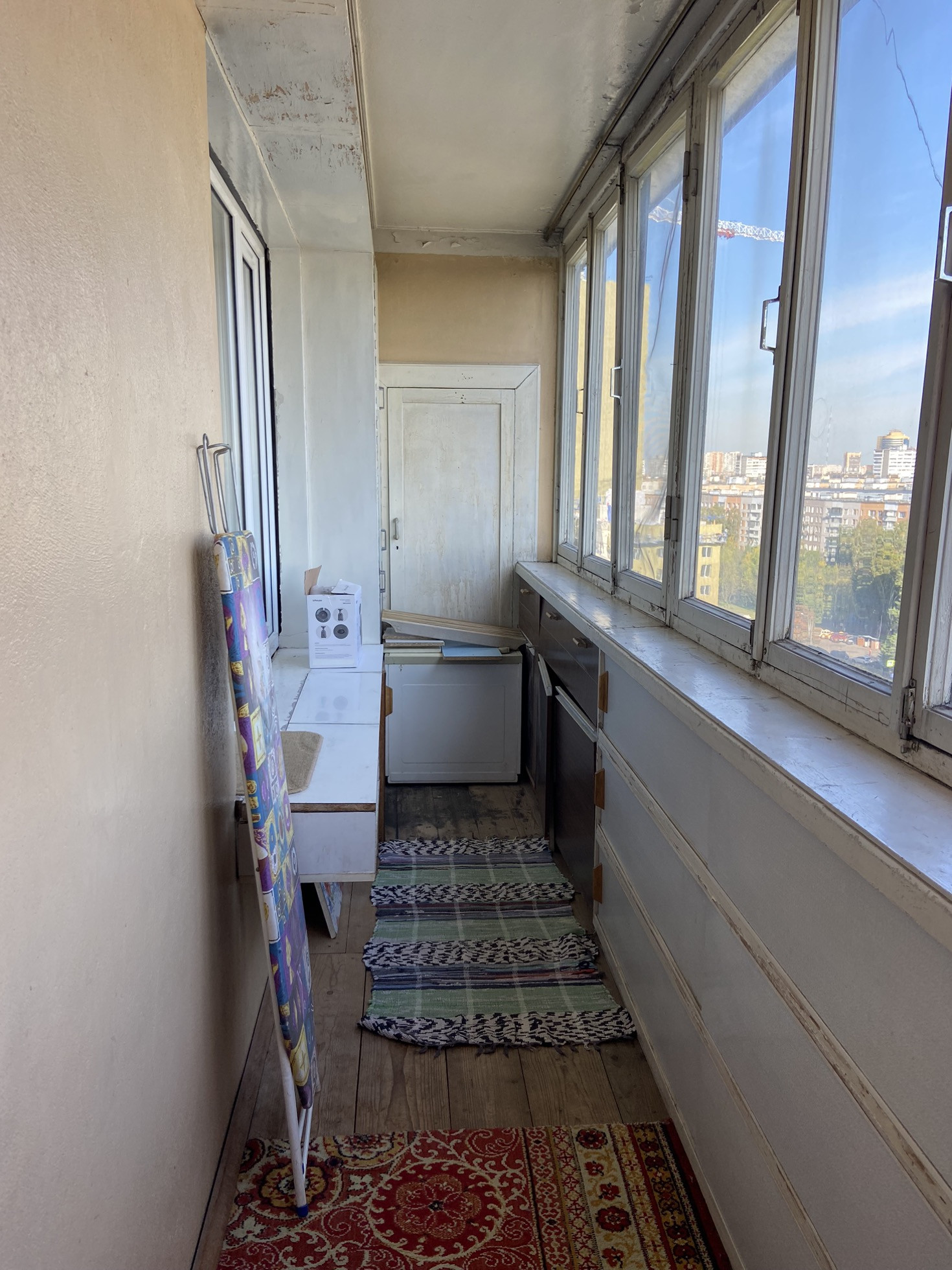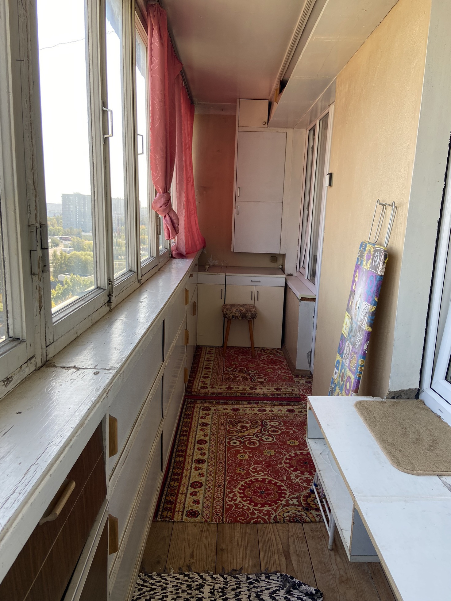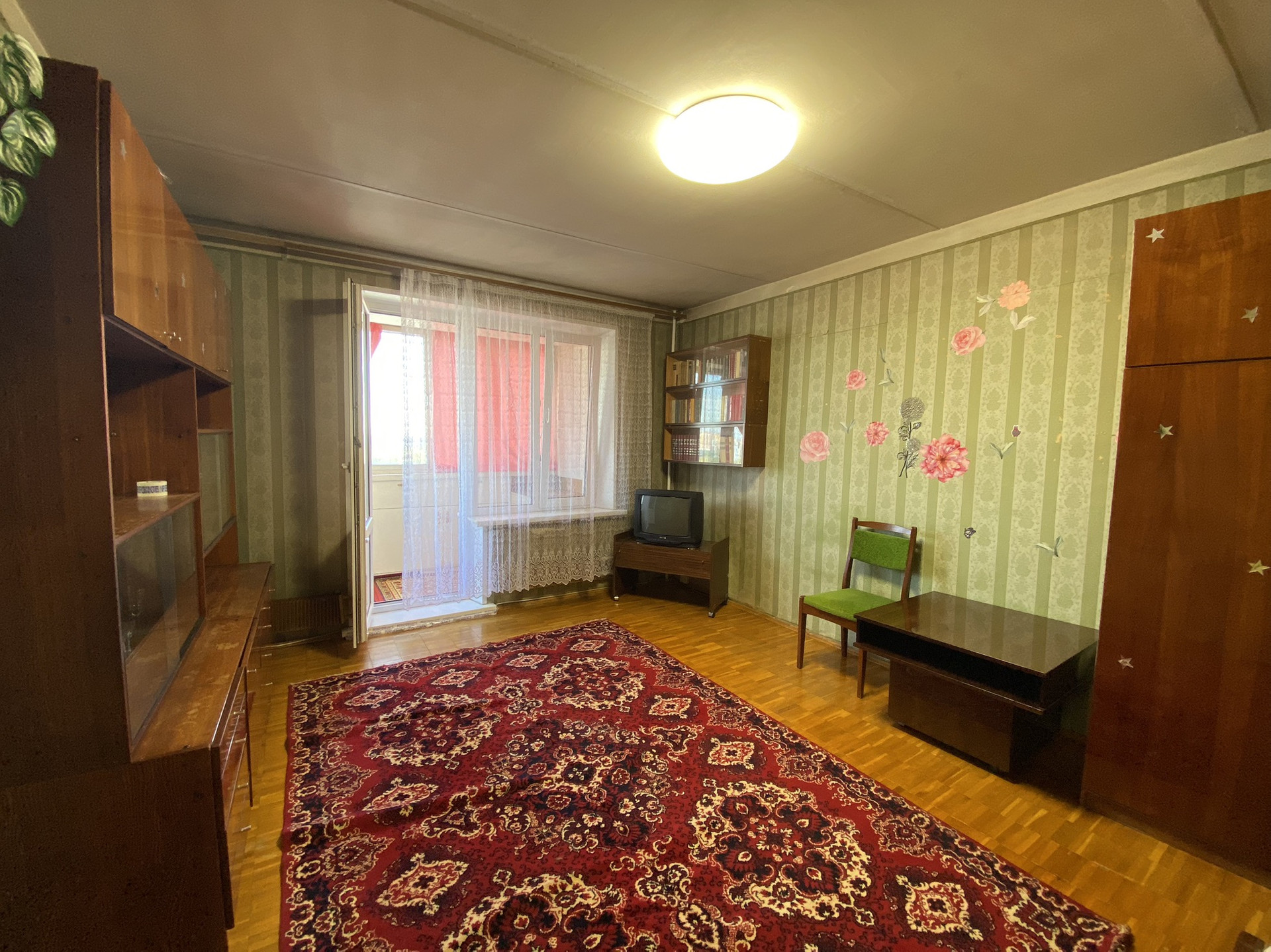 Чистый подъезд, на площадке 4 квартиры, спокойные соседи. Комната 19,6, кухня 9,7., лоджия на всю квартиру, нужен косметический ремонт.