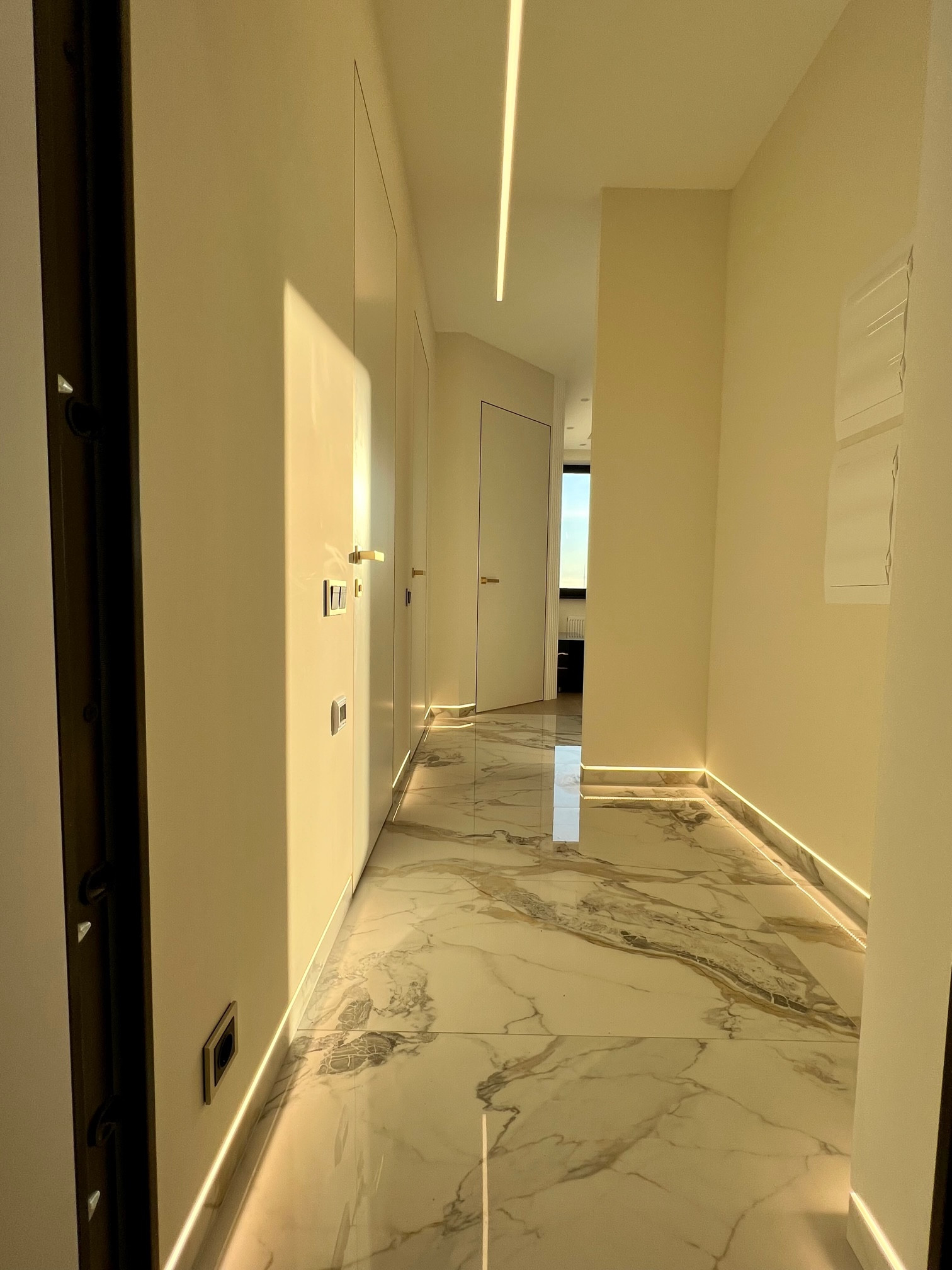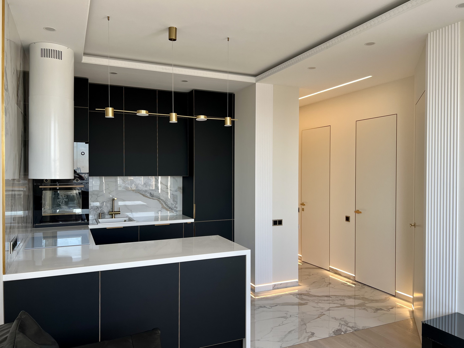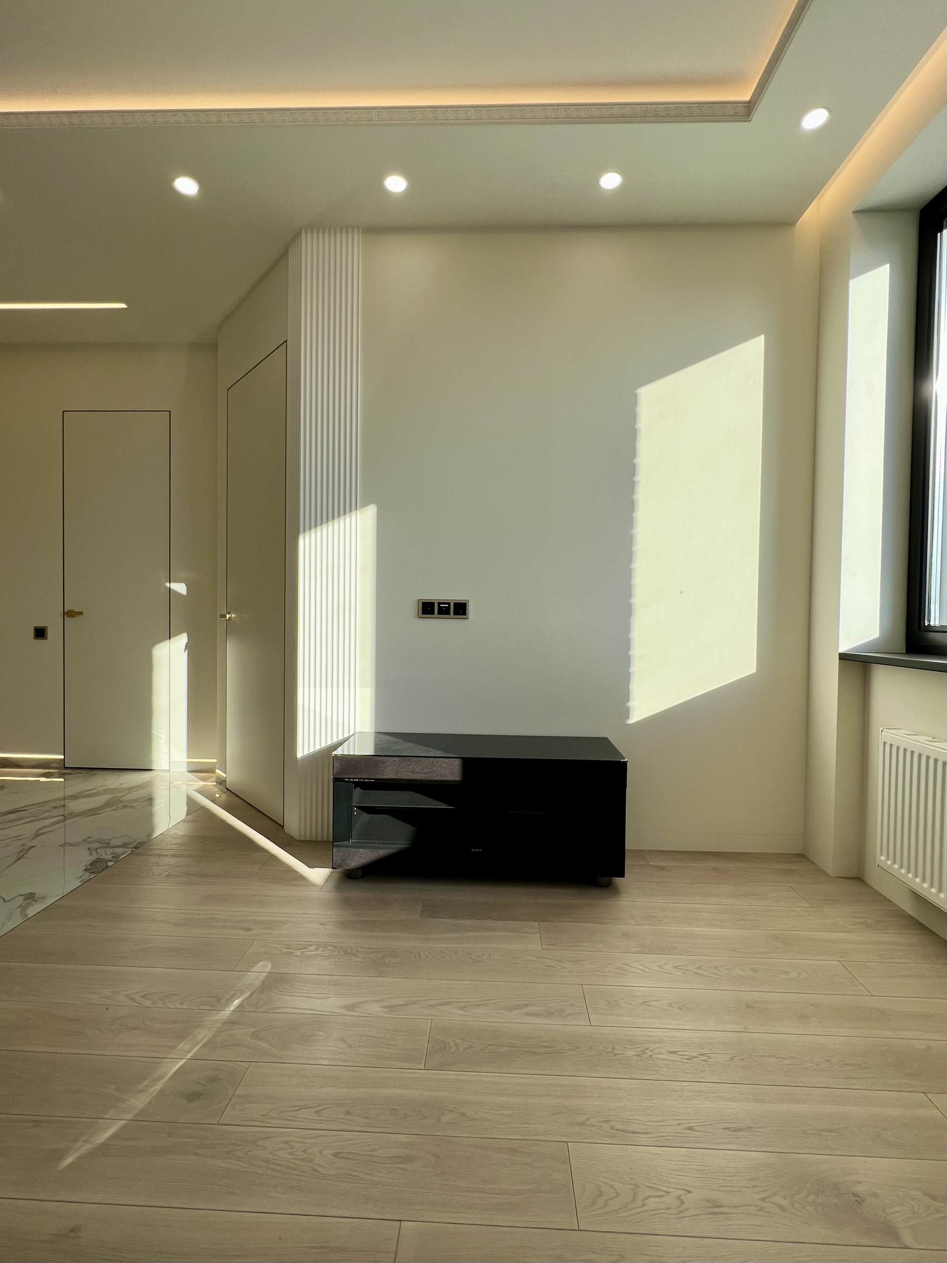Выбирал, покупал и ремонтировал для себя. Дизайнерский дорогой качественный ремонт, скрытые короба высоких межкомнатных дверей (2,3 м), скрытые плинтуса с подсветкой, современная кухня, полностью оборудованная бытовой немецкой техникой BOSCH, включая посудомоечную и стиральные машины, микроволновую печь и духовой шкаф, индукционную плиту, встроенный холодильник LIEBHERR. Все новое, на гарантии. Крупноформатный керамогранит 1200*600 и натуральная паркетная доска KOCHANELLI. Построена профессиональная каркасная система звукоизоляции от TECHNOSonus (см. фото). В ванной комнате немецкая сантехника от Villeroy&Boch, теплый пол, водонагреватель на случай отключения горячей воды. Водопровод разведен немецкими композитными трубами TECE из сшитового полиэтилена с использованием итальянской инженерной арматуры FAR и фитингов TECE. Канализация немецкая Ostendorf. Электрика на дифавтоматах ABB оригинал. Интерьерные дизайнерские подсветки смонтированы лентами Arlight. Музыкальная стереосистема SONY. Швейцарский кондиционер с инвертором Energolux. Двухкамерные стеклопакеты с алюминиевым профилем Masttech, обеспечивающие отличную шумоизоляцию. Просторная, оборудованная гардеробная комната. Ремонт делал для себя, качественно, премиальными материалами, по проектам с актами скрытых работ, но, к сожалению, приходится продавать. В поставке душевые ограждения, прихожая и гардеробная. Все уже мной оплачено, доставка и установка до конца сентября.