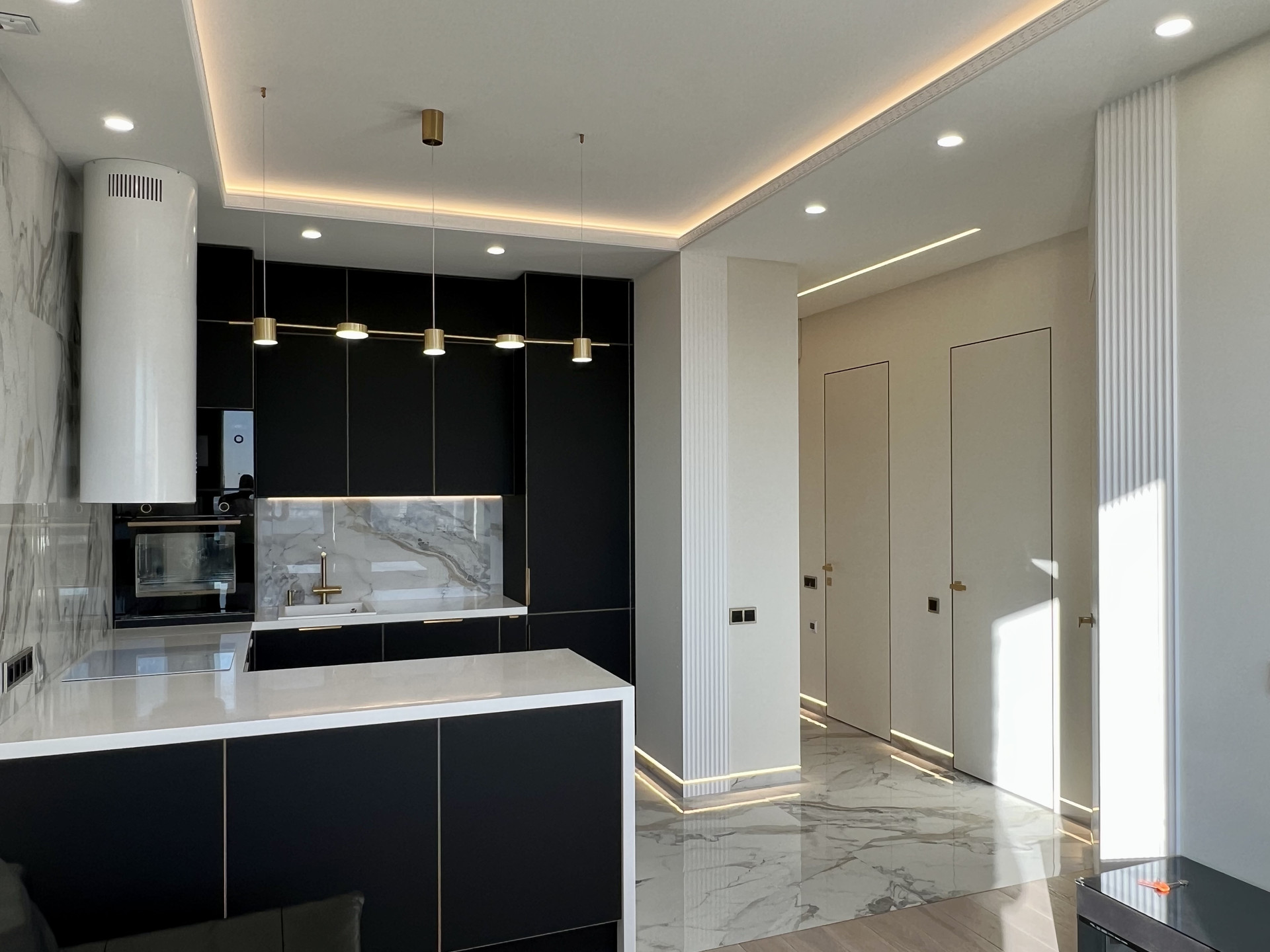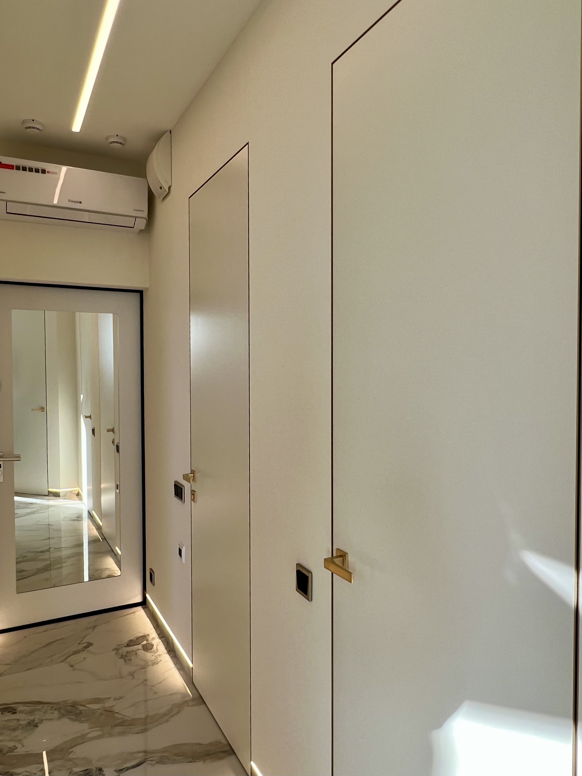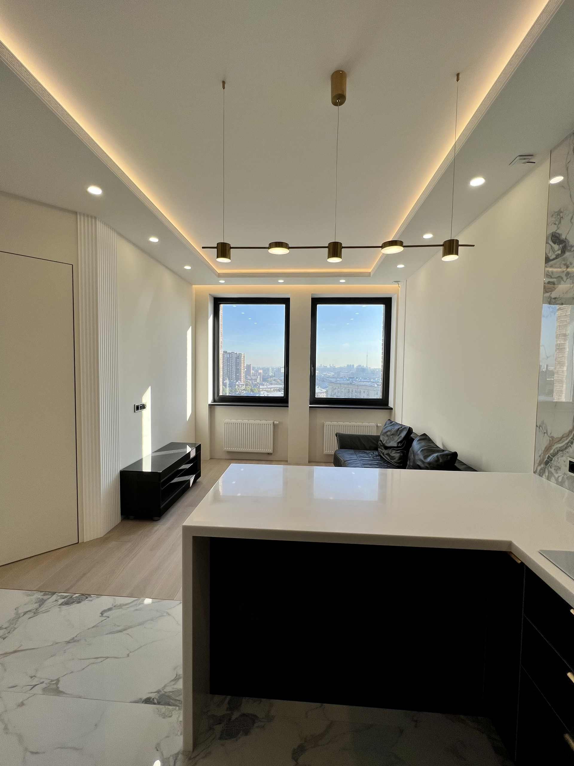 Выбирал, покупал и ремонтировал для себя. Дизайнерский дорогой качественный ремонт, скрытые короба высоких межкомнатных дверей (2,3 м), скрытые плинтуса с подсветкой, современная кухня, полностью оборудованная бытовой немецкой техникой BOSCH, включая посудомоечную и стиральные машины, микроволновую печь и духовой шкаф, индукционную плиту, встроенный холодильник LIEBHERR. Все новое, на гарантии. Крупноформатный керамогранит 1200*600 и натуральная паркетная доска KOCHANELLI. Построена профессиональная каркасная система звукоизоляции от TECHNOSonus (см. фото). В ванной комнате немецкая сантехника от Villeroy&Boch, теплый пол, водонагреватель на случай отключения горячей воды. Водопровод разведен немецкими композитными трубами TECE из сшитового полиэтилена с использованием итальянской инженерной арматуры FAR и фитингов TECE. Канализация немецкая Ostendorf. Электрика на дифавтоматах ABB оригинал. Интерьерные дизайнерские подсветки смонтированы лентами Arlight. Музыкальная стереосистема SONY. Швейцарский кондиционер с инвертором Energolux. Двухкамерные стеклопакеты с алюминиевым профилем Masttech, обеспечивающие отличную шумоизоляцию. Просторная, оборудованная гардеробная комната. Ремонт делал для себя, качественно, премиальными материалами, по проектам с актами скрытых работ, но, к сожалению, приходится продавать. В поставке душевые ограждения, прихожая и гардеробная. Все уже мной оплачено, доставка и установка до конца сентября.