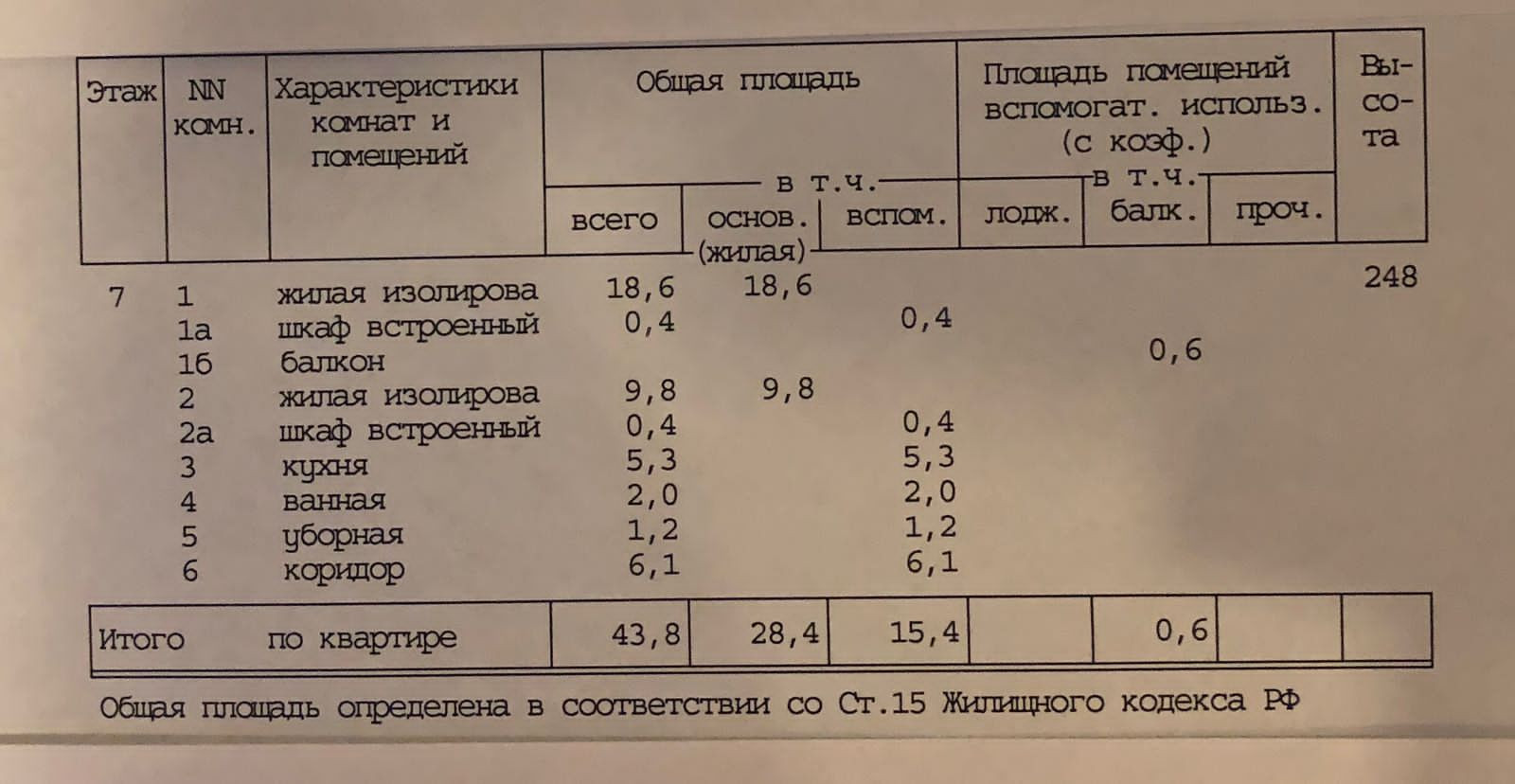 Общая площадь 43.8 м2