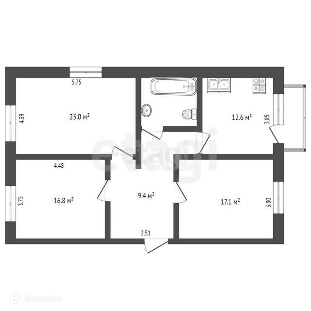3-комнатная квартира с изолированными спальными комнатами 25 и 16,8 и 17,1 метр. С отличной планировкой и видом на 3 стороны.