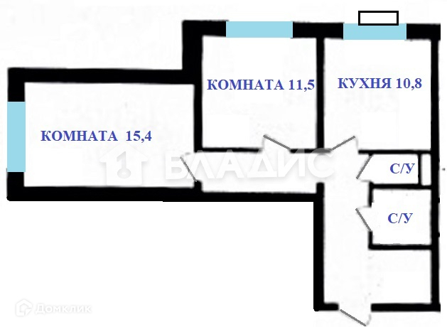 Общая площадь 55.1 м2