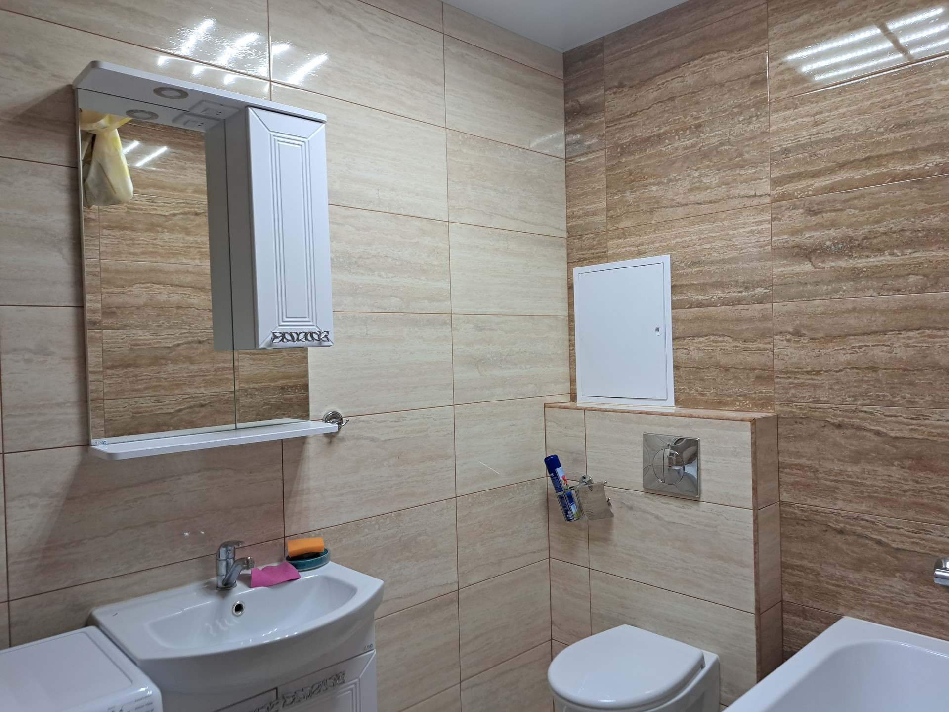 состоянии .Совмещенный вместительный санузел, в нем отлично помещаются стиральная