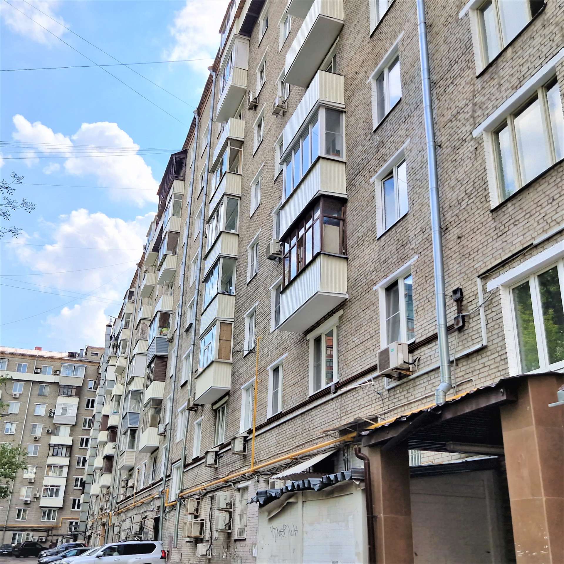 Дом в хорошем состоянии. Подъезд чистый, с косметическим ремонтом. Свободная парковка возле дома.