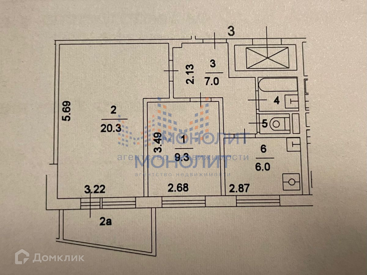 Жилая площадь 29.6 м2