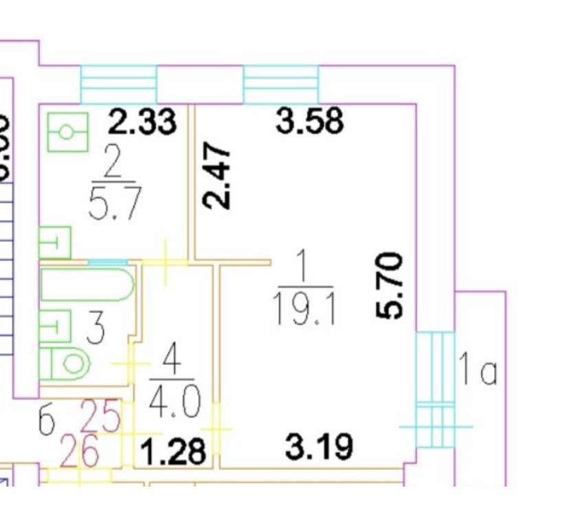 Площадь кухни 5.7 м2