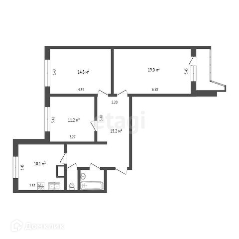3-комнатная квартира, 77.3 м2, этаж 6 / 17, на продажу в Москве, Кантемировская улица, 4к1