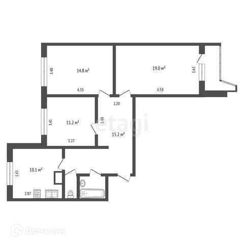 Общая площадь 77.3 м2