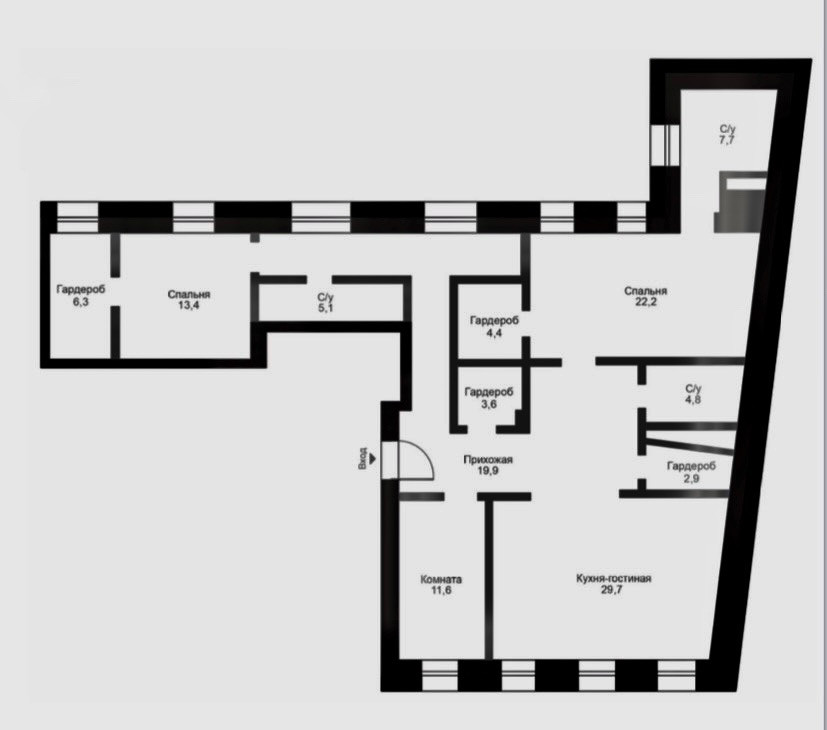 Общая площадь- 141.1 м2,высокие потолки.