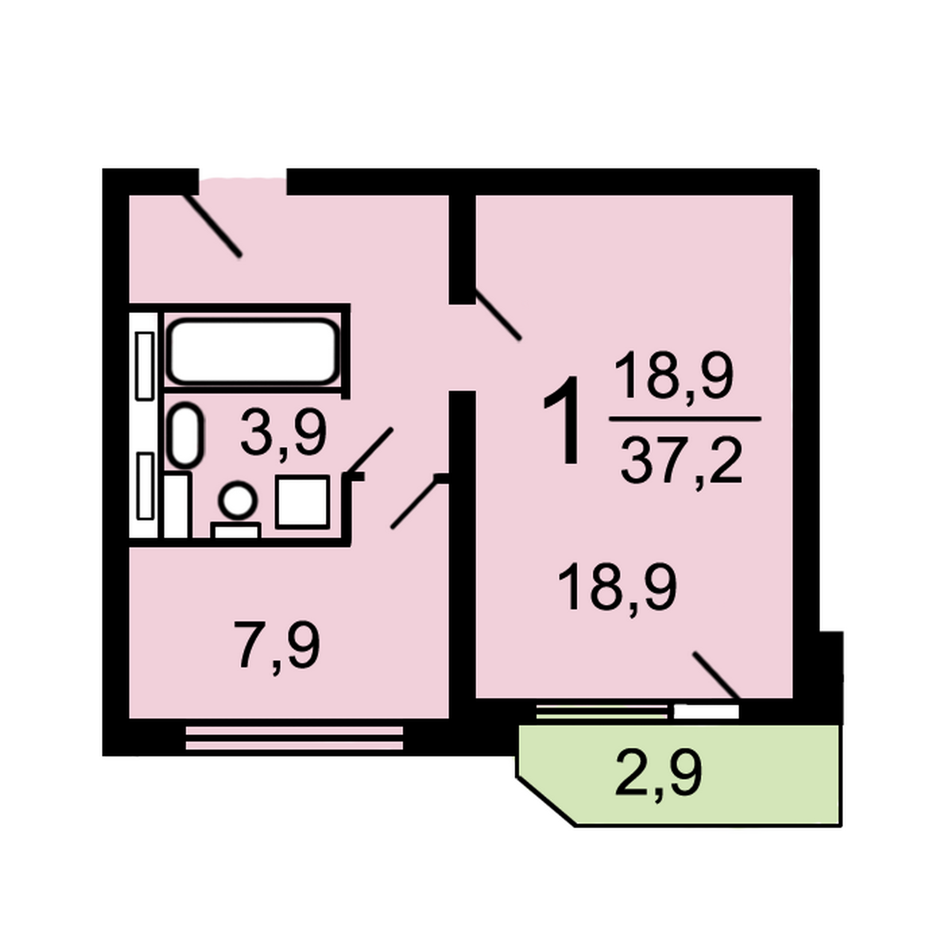 Общая площадь 38 м2
