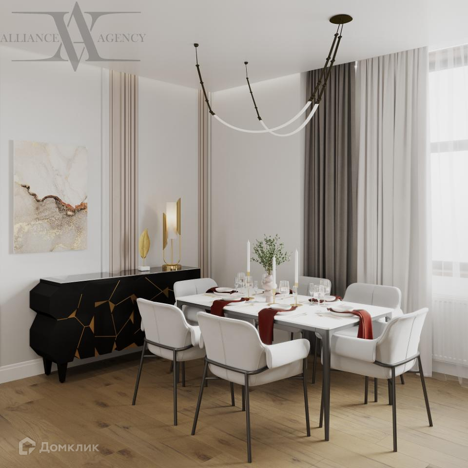 Новая мебель, кухня с техникой и предметы интерьера входят в стоимость. Планировочное решение предусматривает: просторную кухню-столовую-гостиную 34 кв.м., мастер-спальня с высоким и мягким изголовьем кровати, детская с возможностью размещения учебной или игровой зоны, 2 санузла, 2 гардеробные, высокие потолки и панорамное остекление. Благоприятный микроклимат поддерживают кондиционеры. Единство и многообразие элементов создают комфортную обстановку.