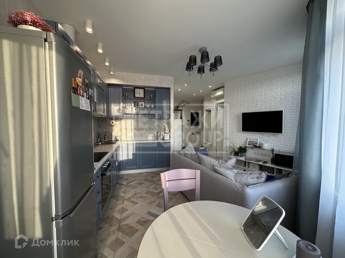В квартире выполнен презентабельный ремонт с использованием дизайнерского решения и применением высококачественных отделочных и чистовых материалов. Функциональная планировка включает в себя:  Вместительный холл с гардеробным помещением и сан/узлом; Просторную изолированную спальню с выходом на балкон малой площади французского типа; Кухню-гостиную.