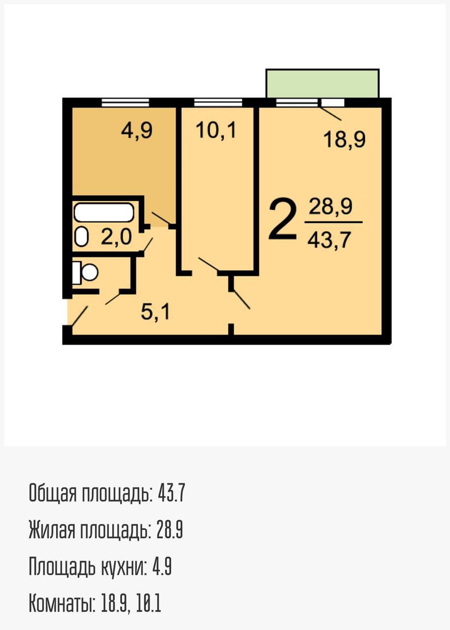 Общая площадь 43.7 м2