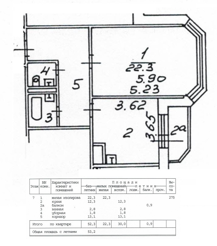 Общая площадь 53.2 м2