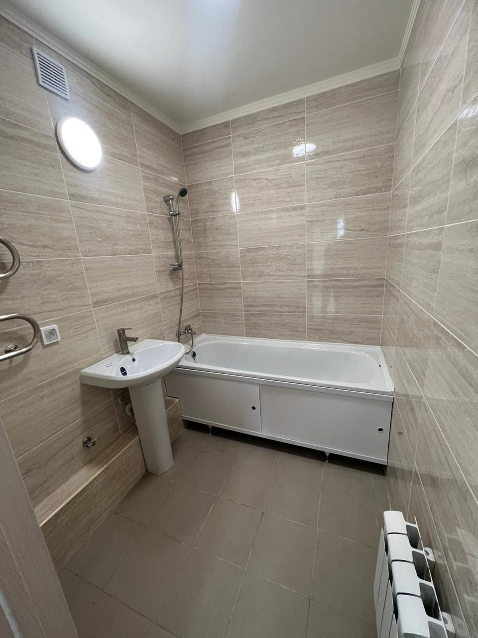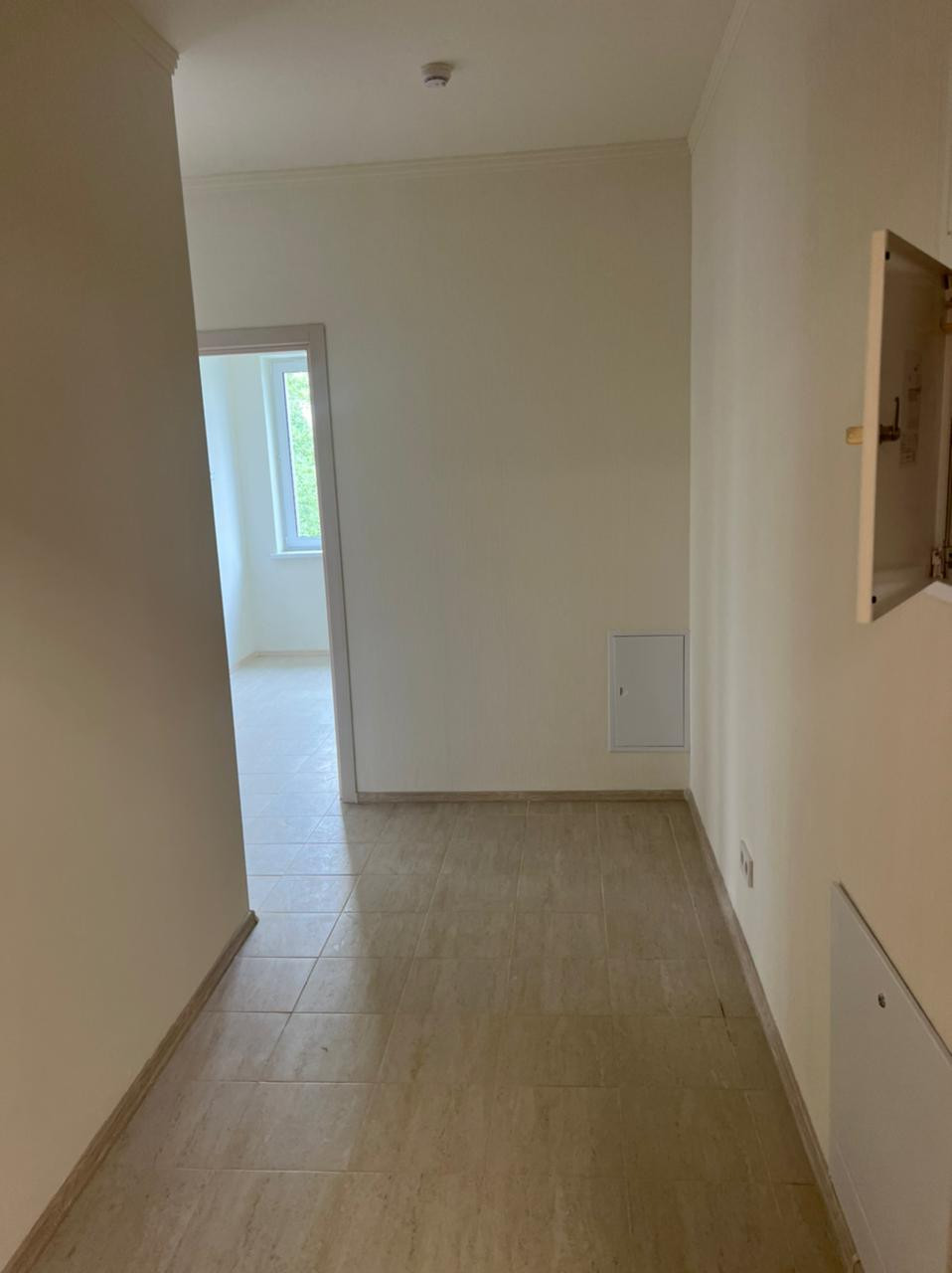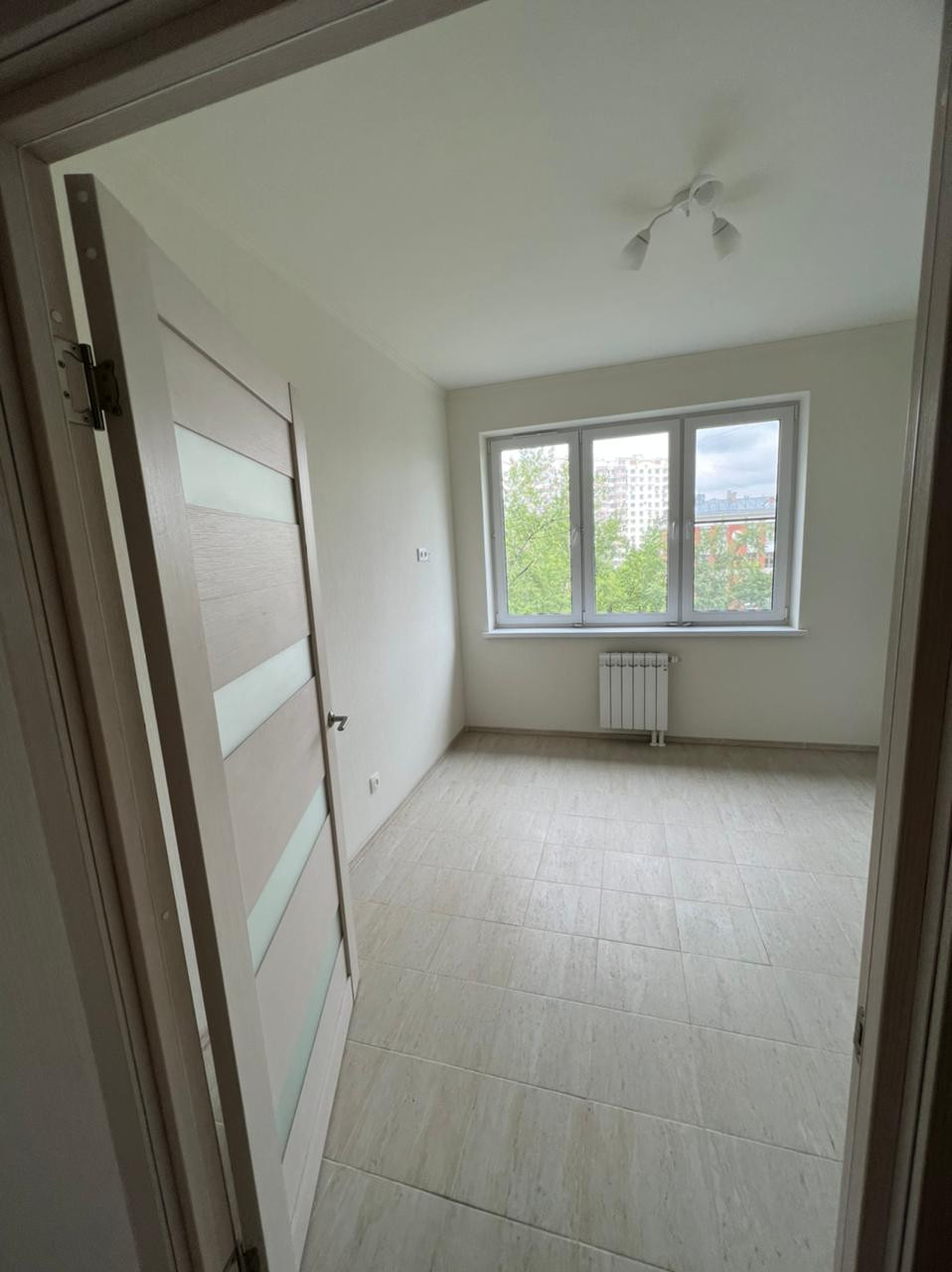 Ремонт - муниципальный. Стены - обои флизелин. Пол - ламинат. На кухне фартук из плитки + плита электрическая. Санузел - светлая керам. плитка, полы - керам. плитка, ванна, раковина, полотенцесушитель, унитаз. Светлые межкомнатные двери.