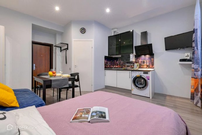 Несмотря на компактность, высота потолков равна 2.75 м, что создает ощущение простора и комфорта. Окна квартиры выходят на улицу.