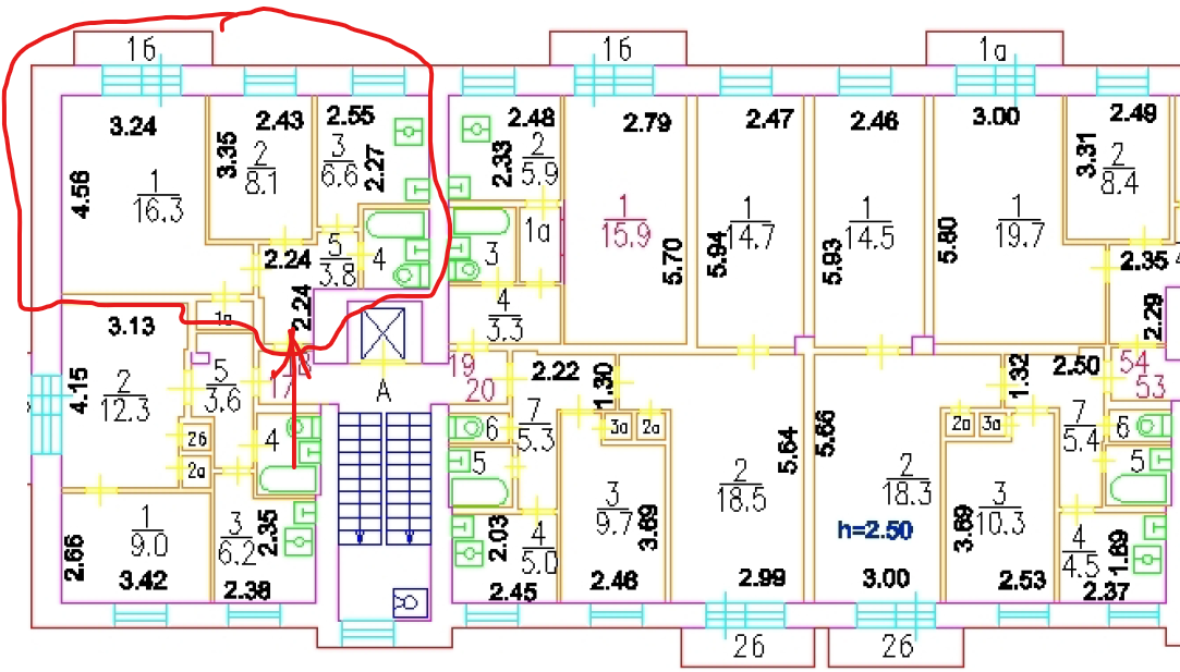 Высота потолков 2.64 м