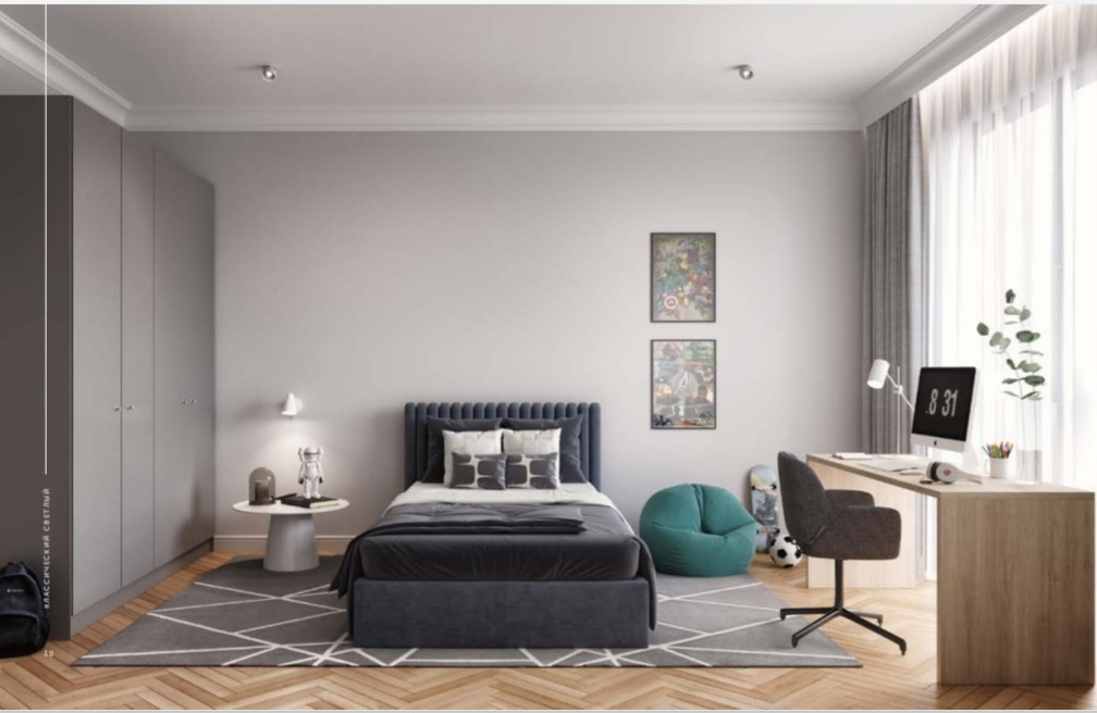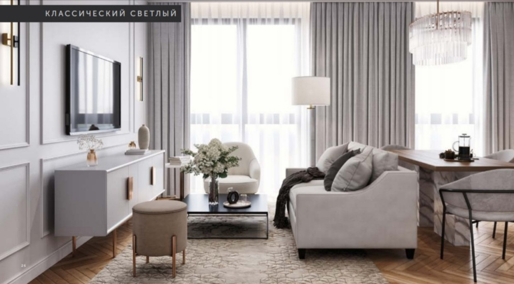 Квартира с дизайнерской отделкой «Классический светлый бизнес» под ключ, в современном стиле. В каждой квартире подключен базовый пакет Умная квартира. Забудьте о беспокойстве о протечке; настройте свои сценарии управления техникой и электричеством; общайтесь с Умной квартирой голосом; Можете легко расширить базовый пакет и подключить дополнительные опции и устройства, чтобы из любой точки мира управляй работой бытовых приборов и систем, например: включайте разогрев ужина; регулируйте яркость яркость света; регулируйте громкость музыки; настраивайте работу теплых полов;