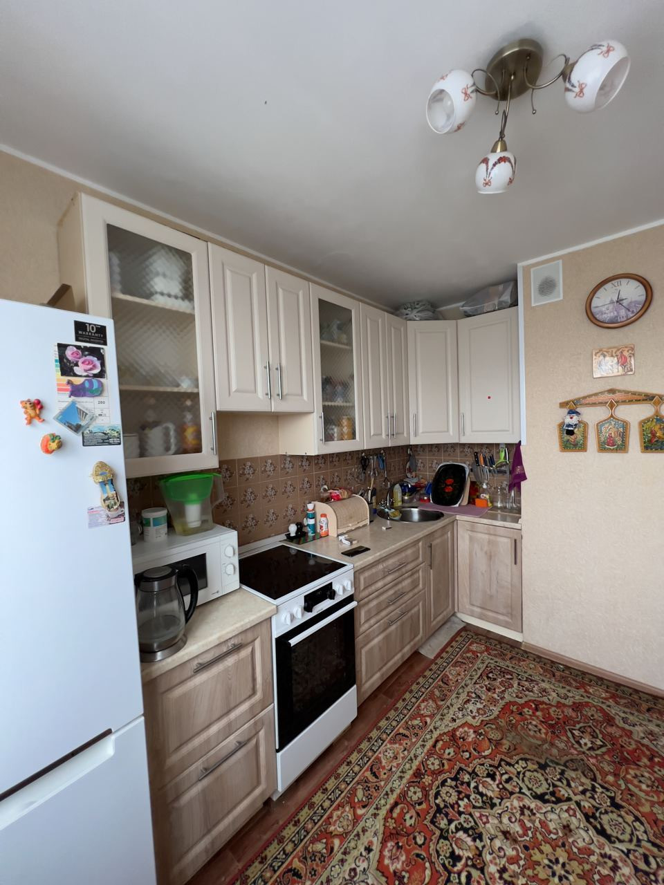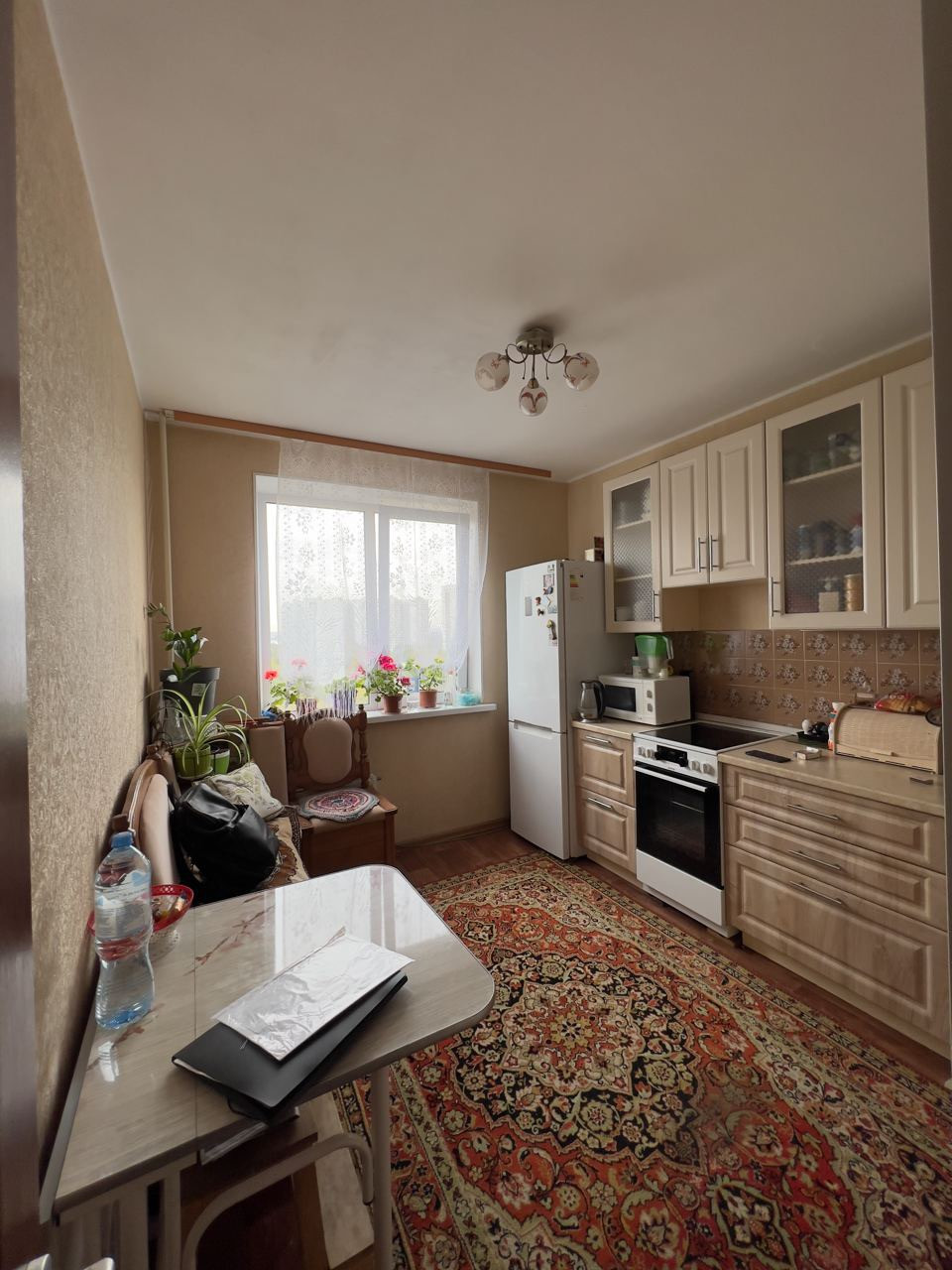 Окна: стеклопластиковые пакеты. Обустроенная кухня бытовой техникой.