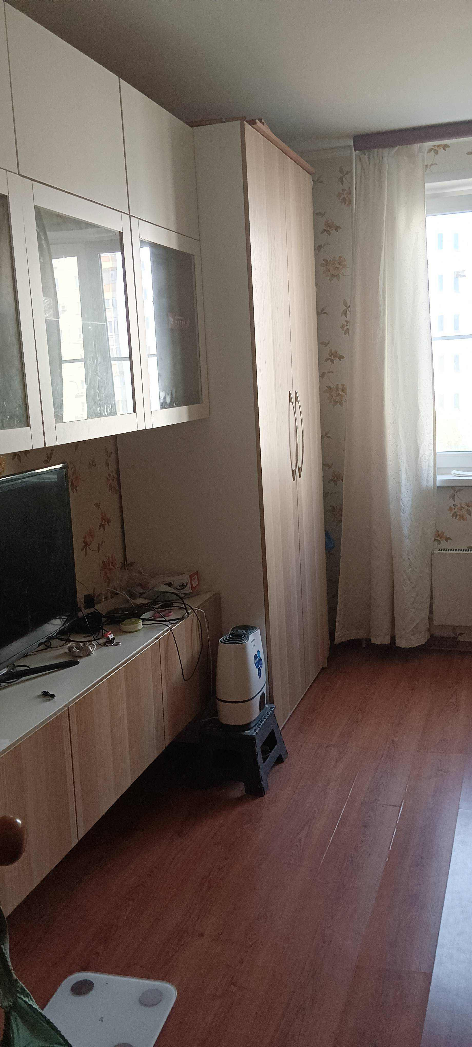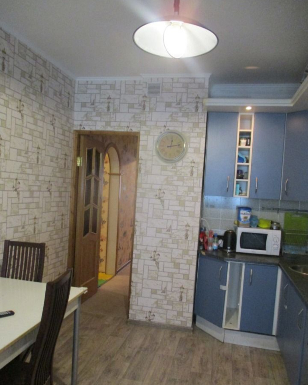 Санузел раздельный, металлическая дверь, пластиковые стеклопакеты, на огромной кухне диван, кухонный гарнитур под единой столешницей, со встроенной электроплитой и стиральной машинкой Ariston, мощный кондиционер в кухне и еще один в большой комнате
