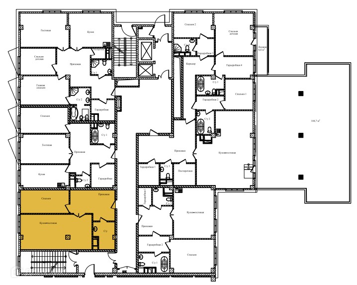 Апартаменты располагаются на 13 этаже 14 этажного монолитно-кирпичного дома. Внутренняя инфраструктура ЖК включает спортивно-оздоровительный комплекс с полноразмерным бассейном длиной 25 метров, VIP-ресторан с летней террасой, премиальный салон красоты и SPA-комплекс. В доме предусмотрены beauty room, baby room, мини-кинотеатр и коворкинг, а также помещения для хранения колясок, велосипедов и спортивного инвентаря. Дизайнерское лобби для деловых встреч и общения. Скоростные бесшумные лифты OTIS. Фасад дома сделан из натурального мрамора в стиле арт-деко, эффектные входные группы и террасы в апартаментах подчеркивает высокий статус и привилегированное расположение дома. Приватная территория вокруг дома с видеонаблюдением и консьерж-сервисом 24/7, дворы с уникальным ландшафтном озеленением, детская площадка, трёхуровневый подземный паркинг.