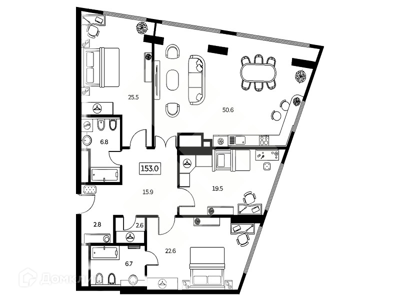 Общая площадь 153 м2