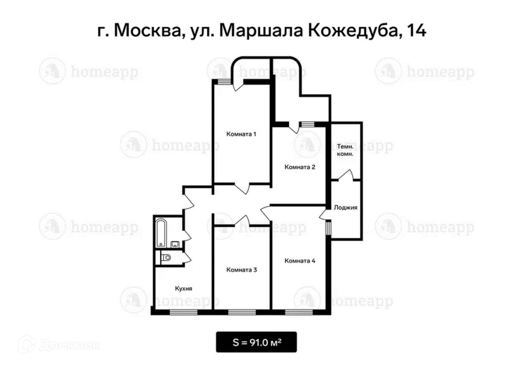 4-комнатная квартира, 91 м2, этаж 2 / 12, на продажу в Москве, улица Маршала Кожедуба, 14