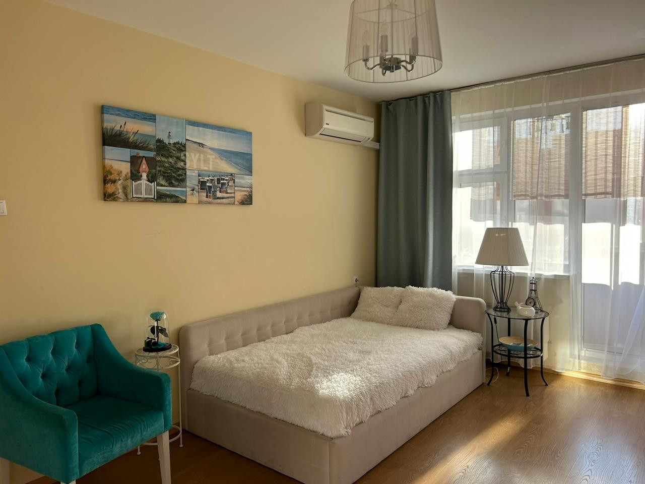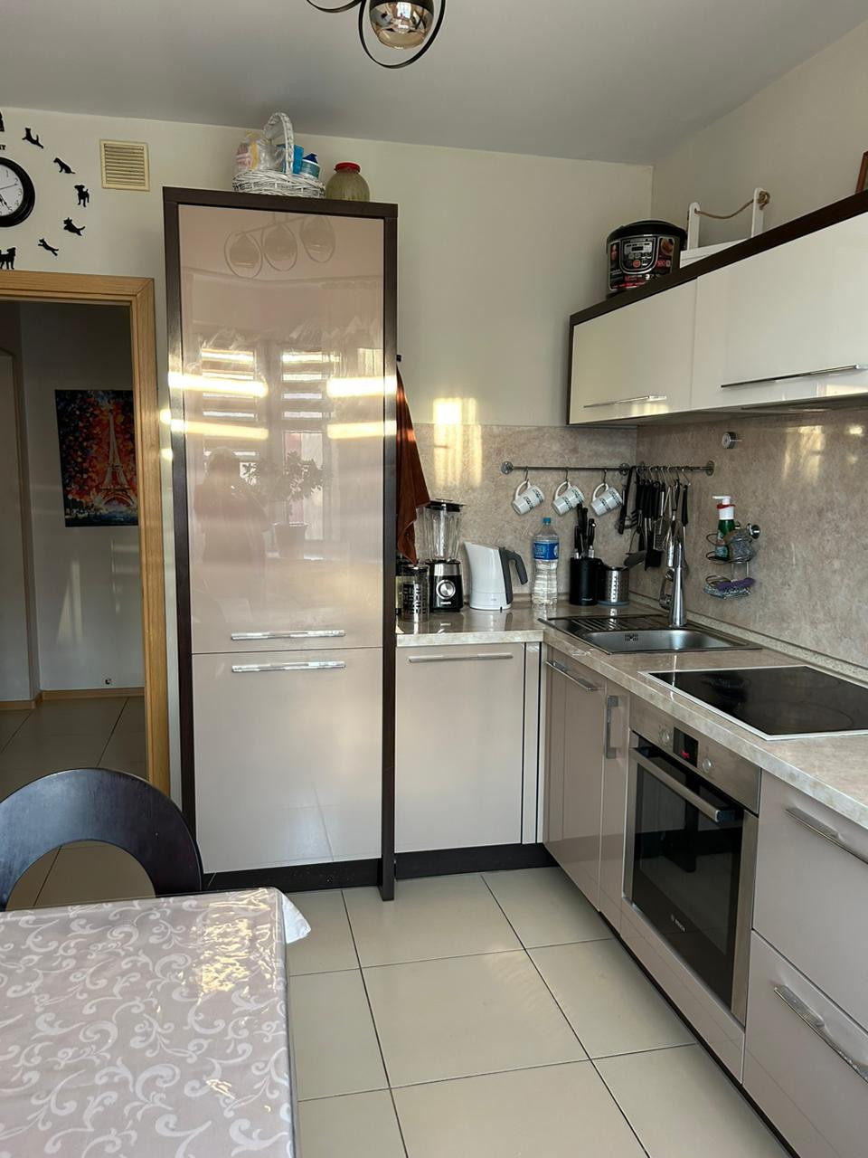 Квартира оснащена мебелью и всей необходимой бытовой техникой.