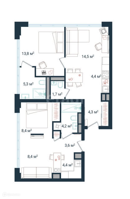 В продаже 2-комнатные апартаменты с мастер-спальней и кухней-гостиной в ЖК бизнес-класса Tatlin.