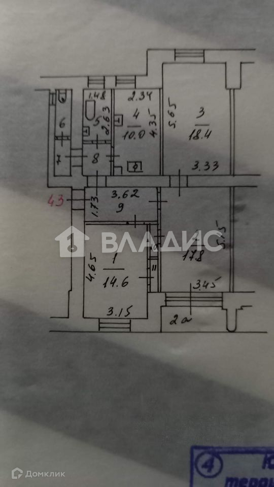 Общая площадь квартиры 78,8 кв.м. Потолки 3,3 м.  Жилая площадь 50,80 кв.м. Площадь комнат: 18,4 кв.м; 17,8 кв.м и 14,6 кв.м  Кухня 10 кв м. Планировка квартиры на две стороны  (РАСПАШОНКА) . В комнате площадью 17,8 кв.м есть балкон (застеклен, утеплен). Есть кладовая. Санузлы раздельные. Квартира чистая, ухоженная, ремонт косметический.