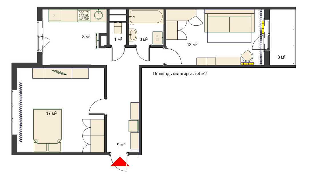Общая площадь 52 м2