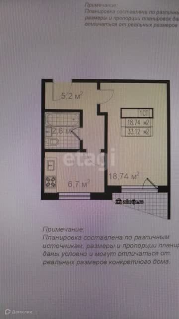 Общая площадь 33.12 м2