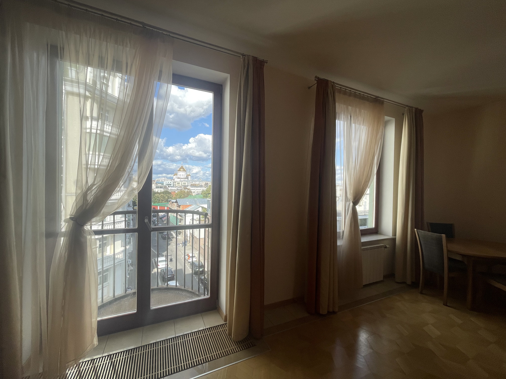 Из окон гостиной и кухни  открываются виды на Храм Христа Спасителя, Зачатьевский монастырь.