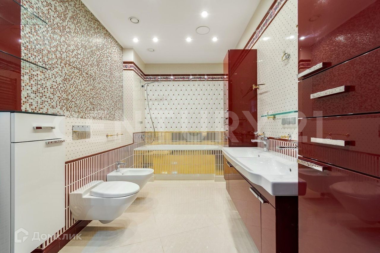 Эксклюзивный многокомнатный пентхаус с функциональной планировкой, гармонично распределяющей жилую площадь: прихожая, столовая-гостиная, светлая и просторная кухня с мебелью известного итальянского бренда, 5 изолированных от общей зоны спален, 2 гардеробные и 3 ванных комнаты.