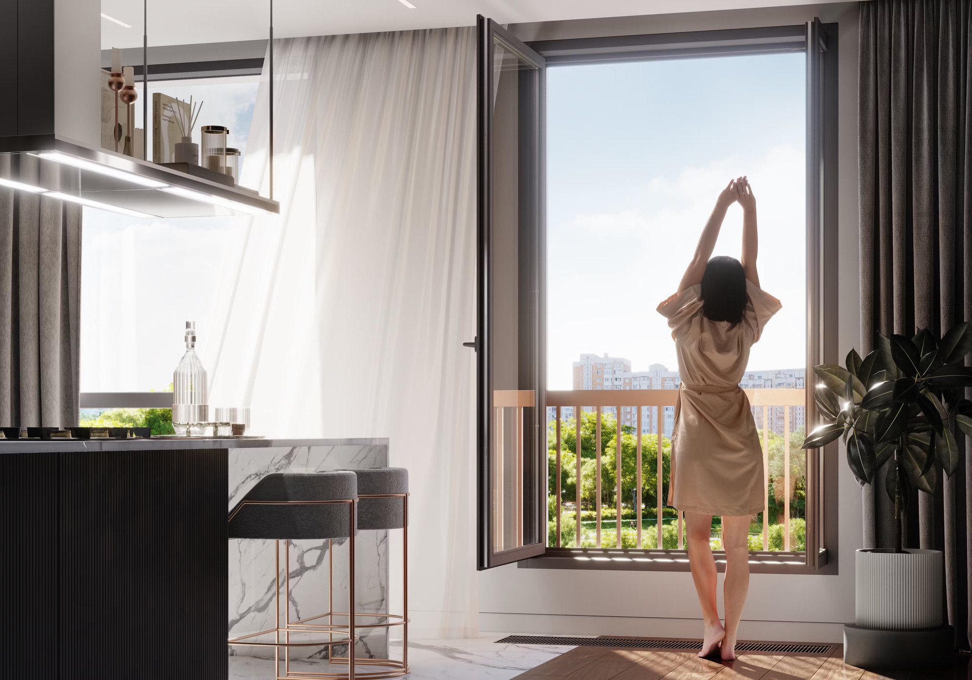 Квартира европейского формата класса Бизнес+ с двумя комнатами площадью 46,2 кв.м. Без стен и с подчистовой отделкой, чтобы Вы могли реализовать всё, что захотите. В квартире установлена система «Умный дом» и «Умная квартира». Высотой потолков 3,25. С большими панорамными окнами, с красивым видом на парк и город.