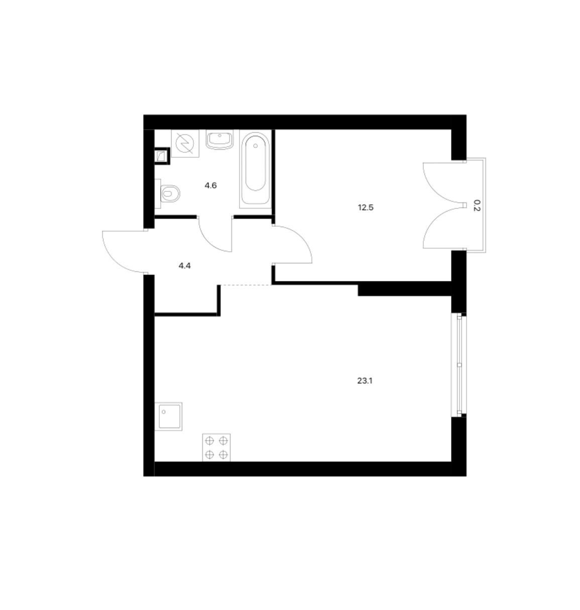 Жилая площадь 12.5 м2