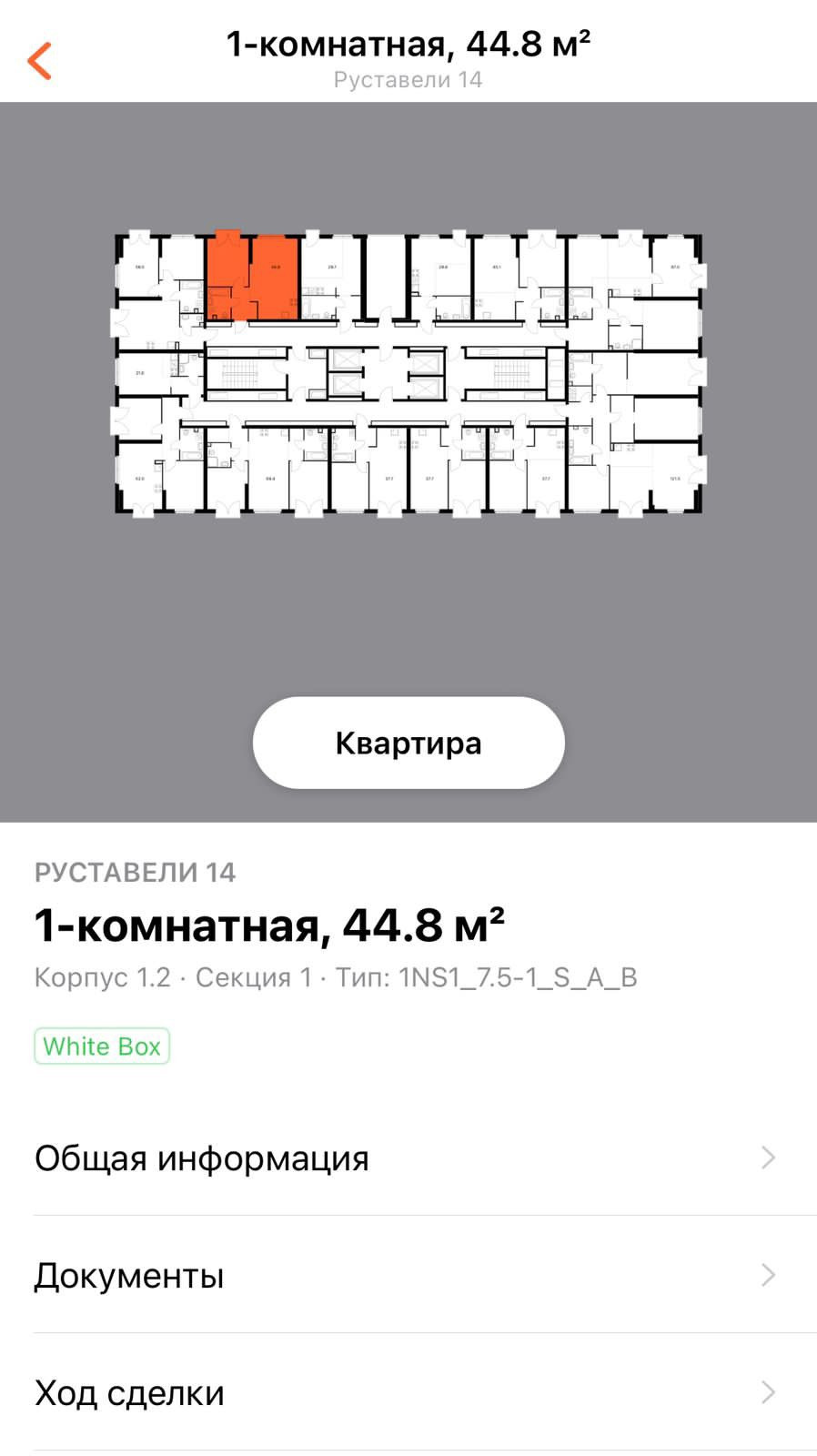 2-комнатная квартира, 44.8 м2, этаж 9 / 33, на продажу в Москве, улица Руставели, 14с3
