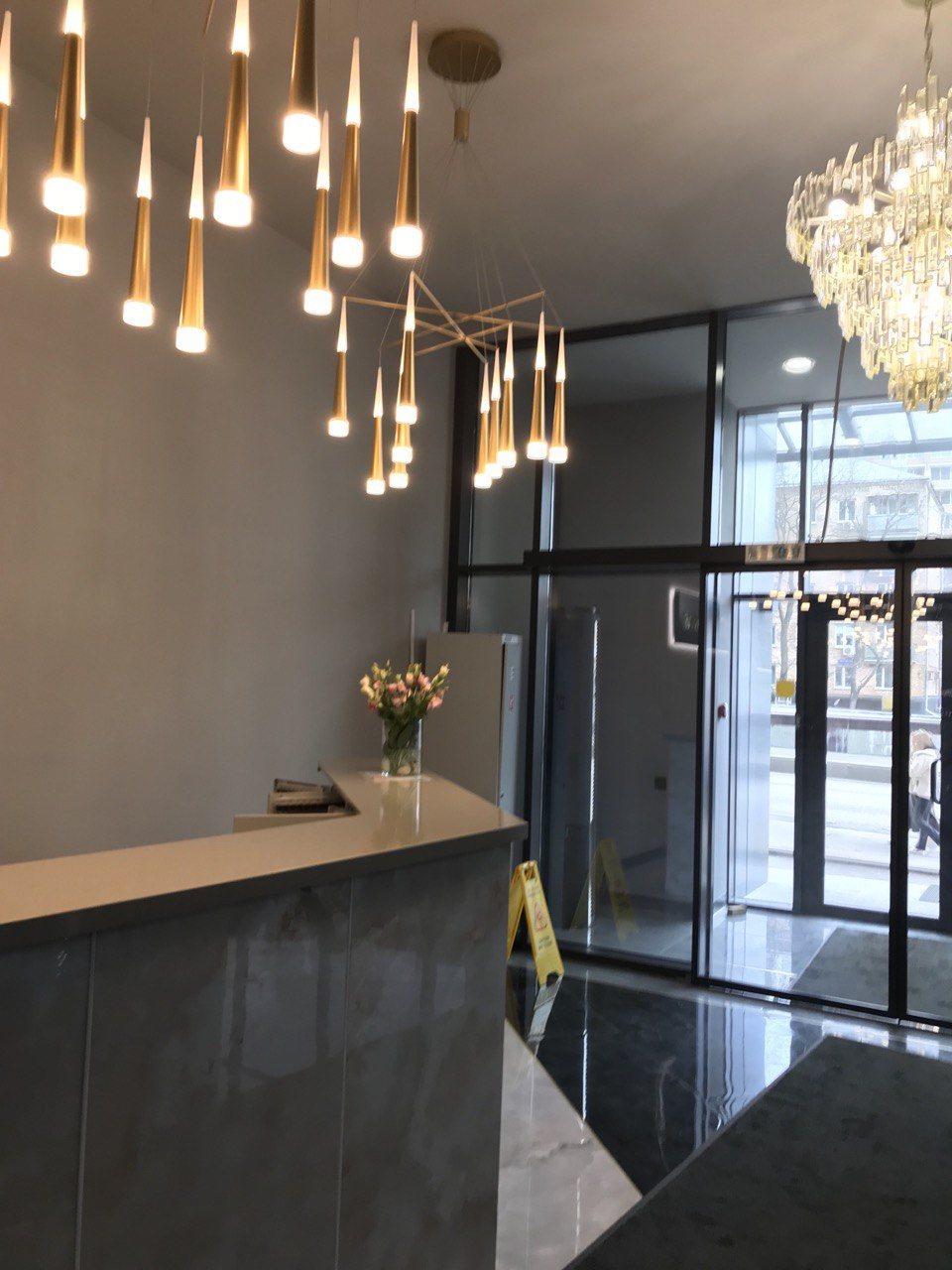 На первом этаже бесплатный фитнес зал для собственников и арендаторов, охрана, красивая входная группа, просторное лобби.